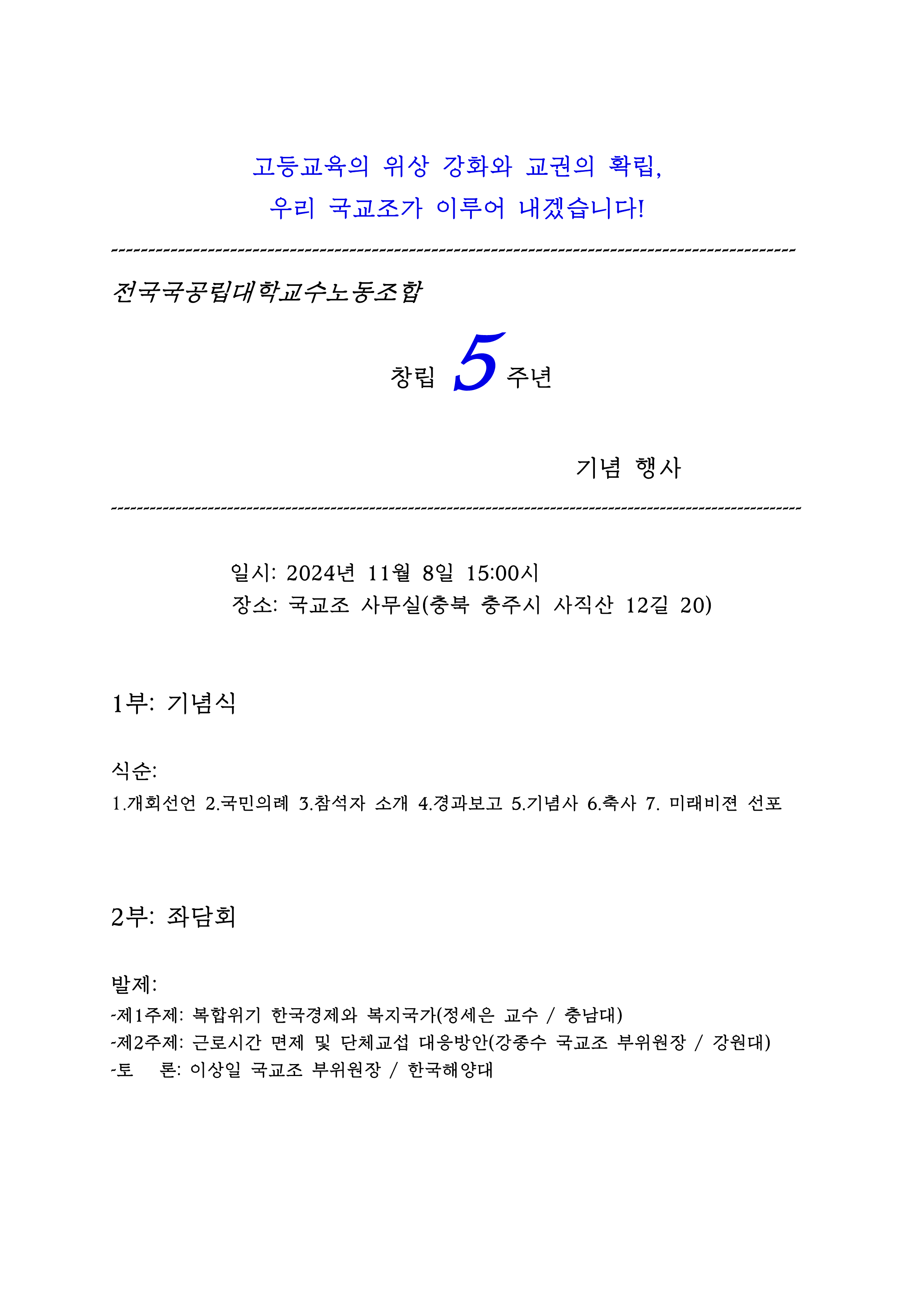 국교조 창립 5주년에 초대합니다! 작성자 관리자 내용 첨부파일 국교조 창립 5주년 초대장_1.png [ Size : 334.73KB, Down : 279 ] 미리보기 다운로드 태그 조회수 256 작성일 2024년 11월 4일 11시 23분 26초 수정일 2024년 11월 4일 11시 25분 31초 목록보기