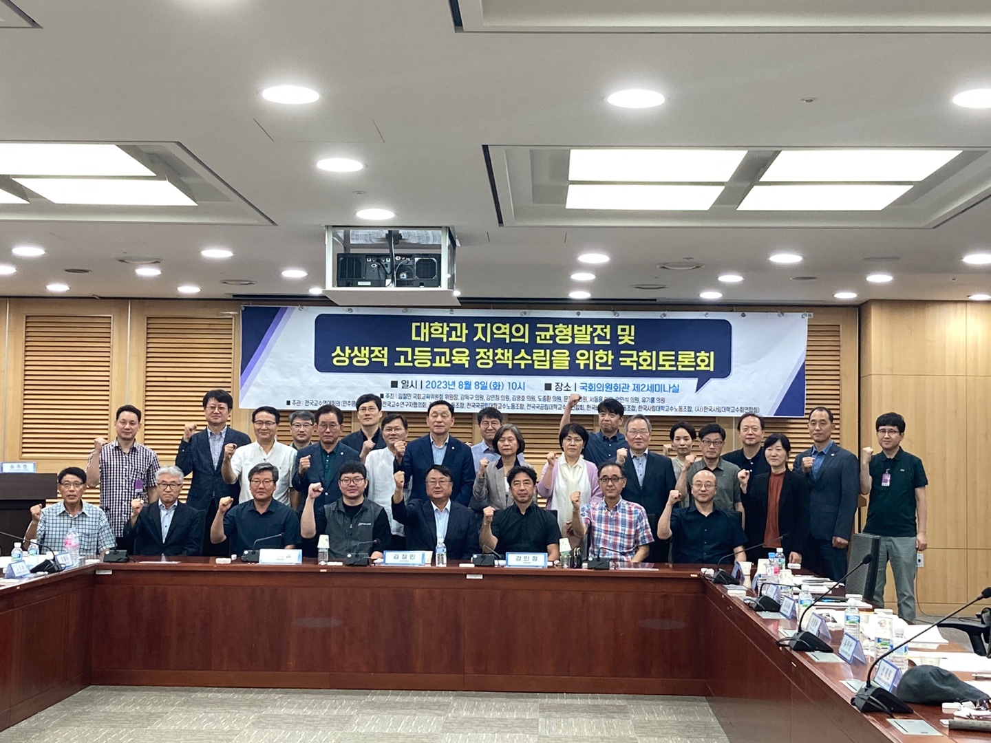 “대학과 지역의 균형발전 및 상생적 고등교육정책 수립을 위한 국회토론회” 개최 2023년 8월 8일 국회의원회관 제2세미나실 민주당 소속 국회교육위원 전원(교육위원장 김철민 의원, 강득구 의원, 강민정 의원, 김영호 의원, 도종환 의원, 문정복 의원, 서동용 의원, 안민석 의원, 유기홍 의원)과 공공적고등교육정책을요구하는전국교수연대회의(전국교수연대회의)가 공동주최한 국회토론회 - - 전국교수회의의 대국민 보고회 - 전국교수연대회의의 “대학 및 지역의 균형발전과 공공적 고등교육정책 수립을 위한 전국교수연대회의 결의문“ 핵심내용: 윤석열 정권의 교육정책의 문제점과 전국교수연대회의의 대안적 대학 개혁방향이 제시 ---------------————————————— <전문> 우리 고등교육은 대한민국 현대사를 통해 민주주의, 경제발전, 선진화된 사회를 이루는데 적극적으로 기여해왔음에도 불구하고, 정부의 무능과 무관심, 반복된 정책실패 탓에 상시적인 공공성의 위기를 경험해왔다. 특히 윤석열 정권이 지난 연말부터 쏟아내고 있는 일련의 시장만능주의적 고등교육 황폐화 정책은 이해당사자들의 의견 수렴은 아예 배제하고 일방적으로 강요되었으며 건강한 학문 생태계를 파괴하고 지역대학의 말살을 추구하고 있다. ‘공공적 고등교육정책을 요구하는 전국교수연대회의(이하 ‘전국교수연대회의’)‘는 지난 2월 출범 이후 윤석열 정부의 고등교육정책 문제점을 적극적으로 비판하면서, 전국 교수들의 의견을 수렴해 싸워왔다. 우선, 지난 12월 30일 자율과 혁신, 규제개혁을 명분으로 입법예고된 「대학설립ㆍ운영규정」 전부개정안은 서울권역 대학들에게 일방적으로 유리하고 지역대학은 마구잡이 구조조정의 소용돌이로 밀어넣는 기준이 되고 있다. 개정안의 요지는 대학의 기본적인 4대 요건(교사, 교지, 교원, 수익용기본재산)의 기준을 낮추는 것이며, 특히 설립기준과 운영기준을 구분하여 후자의 운영기준을 대폭 완화, 혹은 철폐하는 것이다. 현재의 서울권역 우위의 대학서열구조를 그대로 둔 상태에서 이러한 규제철폐는 수도권, 특히 서울권역 대학들에게 학생모집 및 수익사업 면에서 편중된 이익을 제공하고 사학법인들의 이권을 보장해주면서 지역대학의 몰락과 지역 소멸을 촉진할 것이 명약관화하다. 특히 이번 개정안의 실행으로 서울과 수도권 대학들의 학과 신설과 통‧폐합, 학과 간 정원 조정이 한층 자유로워졌고, 인기학과 위주로의 대학 재편이 가능해졌다. 이러한 변화가 결국 수도권 쏠림 현상을 더욱 가속화하리라는 것은 누구나 쉽게 예상할 수 있다. 덧붙이자면, 이런 일방적 정책 기조 위에서 지난 4월 교육부는 첨단학과 육성을 명분으로 수도권 입학정원을 무려 817명이나 늘리면서 서울대는 무려 218명, 성대 96명, 고대 56명 등을 배정하기도 했다. 지역대학의 몰락은 지역경제의 침체를 악화시켜 결국은 나라 전체의 경쟁력을 갉아먹게 되며, 장기적으로 건강한 시민사회 및 경제산업의 토대가 되는 건강한 학문생태계를 파괴하게 될 것이다. 지난 2월 1일 교육부는 ‘라이즈(RISE) 사업’(지역혁신 중심 대학지원체계, Regional Innovation System & Education)을 발표했다. 라이즈 사업은 교육부 대학 재정 지원사업 예산의 50% 이상을 지역으로 내려보내 지역과 대학 간의 혁신적 협력을 모색한다는 취지 위에서 올해 경남, 경북, 대구, 부산, 전남, 전북, 충북 등 7개 시·도가 시범지역으로 선정되었다. 정부는 라이즈 사업을 통해 지자체의 대학지원 권한을 이관하고 규제 완화를 통해 지역과 대학의 동반 성장을 추진하겠다고 했다. 하지만 우리는 정부가 제시한 겉포장에도 불구하고 라이즈가 중앙정부의 고등교육 손떼기 수순이라고 우려한다. 무엇보다도 이 사업은 실질적 고등교육의 예산 증가 없이 기존의 고등교육 사업들인 RIS, LINC 3.0, 지방대활성화사업 등을 통합한 것에 불과하고 그나마 특별회계를 통해 증액했다는 1.72조도 초중등 교육예산에서 한시적으로 충당한 것이다. 결국 라이즈 사업이 지역대학의 건전한 발전을 뒷받침할 중앙정부의 책임을 회피하고, 지역대학에 대한 대대적 구조조정의 험난한 뒷처리를 지방정부에 떠넘기려는 목적이 아니냐고 의심할 수밖에 없다. 또한 라이즈 사업을 지자체가 어떤 방식으로 운영할지 구체적인 계획도 없고, 그 사업이 고등교육의 발전에 어떻게 기여할 것인지 분명한 목표설정도 없다. 지자체가 고등교육의 예산과 정책을 조정할 만큼의 능력과 전문성을 갖추고 있는가의 문제는 별도로 하더라도, 지자체가 학문과 교육의 발전이라는 대전제에 얼마나 충실할지에 대해서도 의문이다. 결국 이 사업의 결과 자율성을 생명으로 하는 대학이 지방 정치의 단기적 이해관계에 좌우될 염려가 크다. 2026년까지 지방 소재 30개 대학을 선정하여 한 곳당 1,000억원씩을 지원하겠다는 사업인 ‘글로컬대학30’ 또한 심각한 문제를 안고 있다. 지난 6월 윤석열 정권은 올해 목표인 10개 대학을 지정하기 위해 15개의 신청프로젝트를 예비 지정했다. 교육부는 이러한 대학재정 지원사업으로 지방소멸을 막고 위기에 처한 지역대학