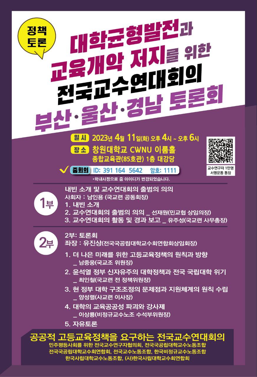 | 부산,울산,경남 토론회-창원대 2023. 4. 11. | |