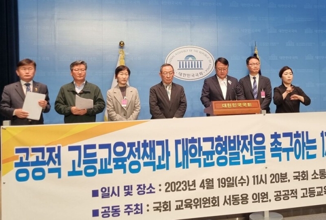 ‘국공립 대학 통폐합’ 교육부 장관 권한?…교수·연구 자 3천여명 반발 '공공적 고등교육정책을 요구하는 전국교수연대회의’가 19일 오전 11시20분께 국회 정론관에서 ‘공공적 고등교육정책과 대학균형발전을 촉구하는 1차 전국 교수·연구자 선언’ 기자회견을 열고 있다. 박고은 기자 전국 대학 교수와 연구자 3300여명이 “정부가 글로컬 대학 30 사업 등 지방대학을 폭력적·무차별적 방식으로 구조조정하고 퇴출시키는 정책을 펼치고 있다”며 정부의 시장주의적 고등교육정책을 규탄하는 시국선언을 했다. ‘공공적 고등교육정책을 요구하는 전국교수연대회의’(전국교수연대회의)는 19일 국회 정론관에서 ‘공공적 고등교육정책과 대학균형발전을 촉구하는 1차 전국 교수·연구자 선언’ 기자회견을 열어 “윤석열 정부의 시장주의적 지방대학 구조조정이 폭력적으로 전개되고 있다”고 비판했다. 이 자리에서 송주명 전국교수노동조합 부위원장(한신대 교수)은 “작년 연말부터 교육부 고등교육정책실의 폐지, 대학설립운영규정상의 공적규제 철폐, 라이즈 사업(RISE·지역혁신중심 대학지원체제), 글로컬 사업 등 숙고되지 않고 준비조차 제대로 되지 않은 정책들이 전국을 뒤흔들고 있다”며 “그 본질은 하나다. 학령인구 급감을 핑계로 우리 국가발전을 위한 공공자산인 지방대학을 폭력적·무차별적 방식으로 구조조정하고 퇴출시키는 정책”이라고 꼬집었다. 교육부는 지난 18일 ‘글로컬대학 30 추진방안’(글로컬 사업)을 확정·발표했다. 앞서 지난 3일에는 교육부 장관에게 국공립대학의 통·폐합을 결정할 권한을 주는 ‘국립학교 설치령 제24조’ 신설을 입법예고했다. 이에 대해 교육계에선 정부의 대학 구조조정이 성급하고 폭력적인 방식이라는 비판이 나오고 있다. 특히 글로컬 사업은 지역내 산학연계와 대학 구조조정 등 ‘과감한 혁신’에 나선 지방대학 30여곳에 5년 동안 대학당 약 1천억원을 지원하는 사업이다. 이에 대해 전국교수연대회의는 윤석열 정부의 고등교육정책이 철저히 신자유주의적 시장의 논리를 따르고 있으며, 이는 비수도권 대학을 폭력적으로 구조조정하는 결과로 이어질 것이라고 지적했다. 이들은 국립학교 설치령 제24조 신설을 입법예고에 대해서도 우려를 나타냈다. 남중웅 전국국공립대학교수노동조합 위원장(한국교통대 교수)은 “교육부 장관에게 국립대학 통·폐합의 권한을 위임하겠다는 발상은 헌법 제31조 제4항에 명시된 대학의 자율성을 심각하게 침해하는 규정”이라며 “이 과정에서 윤석열 정부가 고등교육 주체의 하나인 대학과 공론화 과정조차 거치지 않고 있다”고 지적했다. 전국교수연대회의는 기자회견문을 통해 “우리 교수들은 ‘반대를 위한 반대’를 하려는 게 아니다”라며 “정부가 교수, 학생 등 대학의 이해당사자들과 머리를 맞대고 충분히 협의해 대학 발전의 실질적인 대안을 마련하자고 호소하는 것”이라고 밝혔다. 그러면서 △대학설립·운영규정 전부개정령안·라이즈 사업·글로컬 대학 추진계획 즉각 철회 △대통령 직속의 범부처적 고등교육정책 총괄기구 설치 △국회 계류중인 ‘국립대학법’ 제정 등을 요구했다. 이날 시국선언에는 전국 339개 대학·31개 연구소에 소속된 3298명의 교수 및 연구자가 서명에 참여했다. 지난 2월 ‘윤석열 정부의 저급한 고등교육 시장화 정책 폐기를 위한 전국 교수 1차 시국선언’에 참여했던 1056명의 3배를 넘는 규모다. 한편 글로컬대학 추진사업이 폭력적인 대학 구조조정이라는 비판에 대해 이주호 사회부총리 겸 교육부 장관은 "모든 대학의 발전을 위한 것"이라고 말했다. 이 부총리는 이날 열린 대전·세종·충남지역 대학총장협의회에서 "윤석열 정부 동안 30개 내외의 글로컬대학을 지정하겠지만 결코 30개만을 살리기 위한 정책이 아니"라며 "글로컬대학으로 시작된 혁신과 변화를 통해 모든 대학이 성장하고 발전할 수 있는 생태계를 만들 것"이라고 강조했다. |