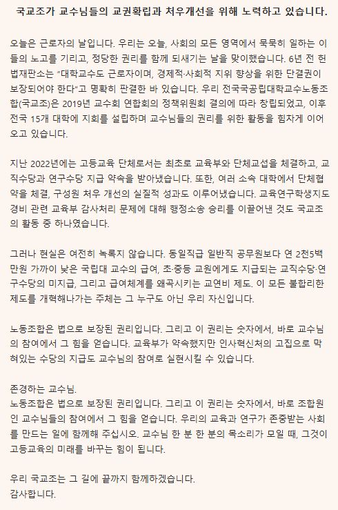노동절 인사 날짜 2025년 5월 1일 작성자 관리자 내용 첨부파일 노동절 인사.PNG [ Size : 46.9KB, Down : 131 ] 미리보기 다운로드 태그 작성일 2025년 5월 1일 20시 53분 47초 수정일 목록보기