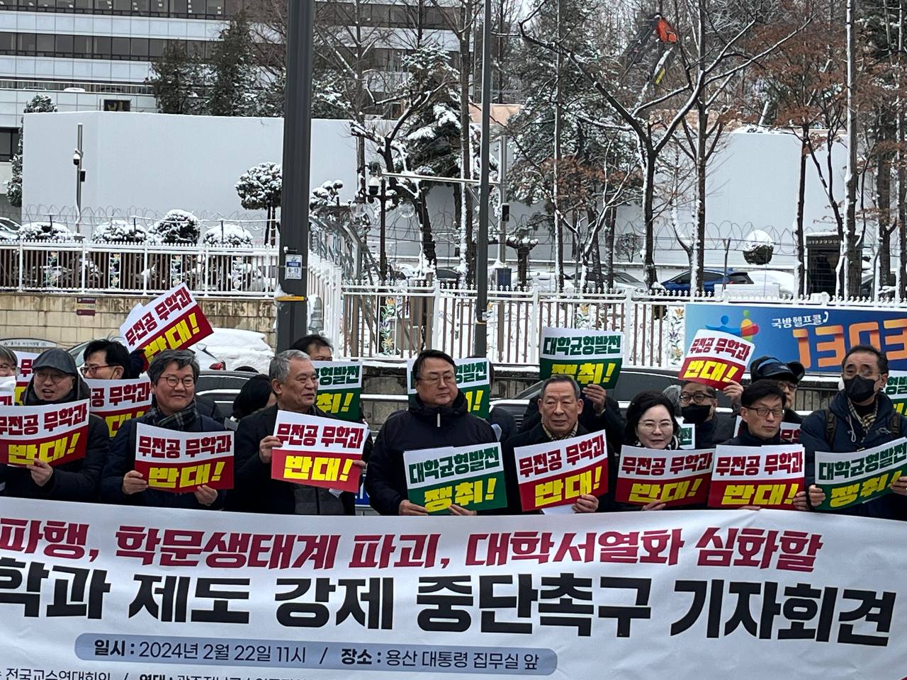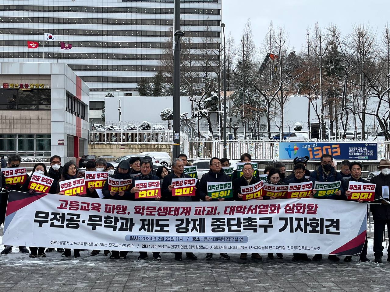무전공 무학과 제도 강제 중단촉구 기자회견 날짜 2024. 2. 22 작성자 관리자 내용 첨부파일 photo_2024-02-22_14-54-12.jpg [ Size : 295.85KB, Down : 251 ] 미리보기 다운로드 photo_2024-02-22_14-54-06.jpg [ Size : 280.12KB, Down : 249 ] 미리보기 다운로드 photo_2024-02-22_14-53-51.jpg [ Size : 202.94KB, Down : 259 ] 미리보기 다운로드 태그 작성일 2024년 2월 22일 15시 8분 19초 수정일 목록보기